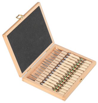 Zierschnitzeisensatz im Holzkasten | 14-teilig