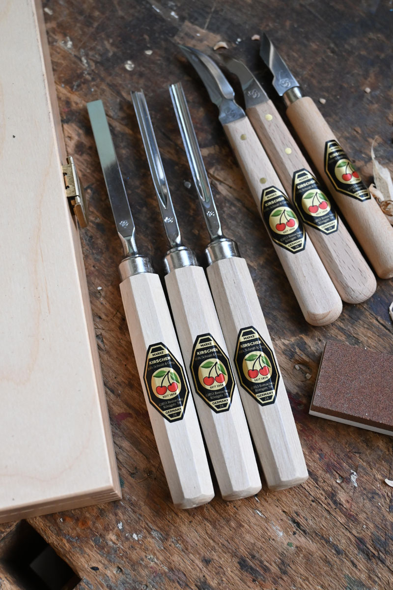 • Kerbschnitzbeitelsatz im Holzkasten